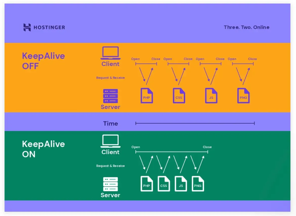 HTTP 프로토콜의 Keep-alive 기능은 클라이언트와 서버 간 요청 및 응답 과정을 효율적으로 유지하기 위해 사용된다. Keep-Alive 를 활성화하면 하나의 TCP 연결을 여러번 재사용하며 응답과 요청을 수행할 수 있다.